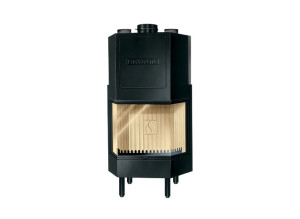 Моноблок от боядисана в черно стомана, огнище от “ALUKER®”, димосборна камера от 2мм алуминизирана стомана. Скара от чугун с челна стойка за дърва. Моноблок, проектиран за безопасна употреба, позволяващ максимално оползотворяване на топлината отделена при изгарянето на дървата. Може да се ситуира в ъгъл или на права стена. Оборудвана е с вертикално плъзгаща се призматична стъклена врата с три отворени страни позволяващи пълна гледка към пламъците, както фронтално, така и странично. Може да се добави като опция система за вентилация Multifuoco®.