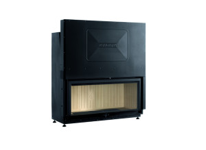 Неповторима и изчистена линия. Моноблок от лукксозен клас от боядисана в черно стомана, огнище от “ALUKER®”, димосборна камера от 3мм алуминизирана стомана. Скара от чугун и керамична основа. Моноблок, проектиран за безопасна употреба, позволяващ максимално оползотворяване на топлината отделена при изгарянето на дървата. Може да се ситуира в ъгъл или на права стена. Оборудвана е с вертикално плъзгаща се стъклена врата без долна хоризонтална метална рамка за неповторима гледка към пламъците. Без видими дръжки за вратата. Може да се добави като опция система за вентилация Multifuoco®.Технически характеристики: