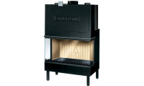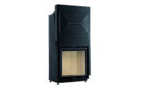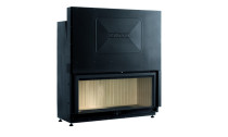 Моноблок от боядисана в черно стомана, огнище от “ALUKER®”, димосборна камера от 2мм алуминизирана стомана. Скара от чугун с челна стойка за дърва. Моноблок, проектиран за безопасна употреба, позволяващ максимално оползотворяване на топлината отделена при изгарянето на дървата. Може да се ситуира на права стена. Оборудвана е с вертикално плъзгаща се стъклена врата с две полуотворени страни позволяващи пълна гледка към пламъците, както фронтално, така и странично от двете страни. Може да се добави като опция система за вентилация Multifuoco®.Технически характеристики: