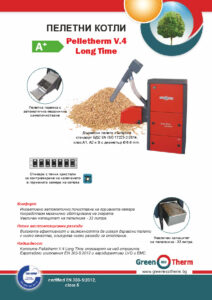 Водогрейните котли Pelletherm V.4 LT са модификация на базовия модел пелетни котли от серията Pelletherm V.4. Подходящи са за отопление на малки битови и фирмени обекти, както и за подгряване на битова гореща вода.  Окомплектовани са с: пелетна горелка с автоматично самопочистване от серията GP sc; горивоподаващ шнек; комплект инструменти за почистване.
