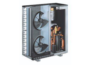За високата ефективност на новите термопомпи се грижат Scroll-компресорът с регулиращи се обороти и асиметрично оразмереният топлообменник, намиращи се във външните тела. Особеното на топлообменника е значително по-голямото сечение на каналите от страна на водата и на хладилния агент. Така се увеличава топлообмена и се намалява консумацията на електроенергия на циркулационната помпа.